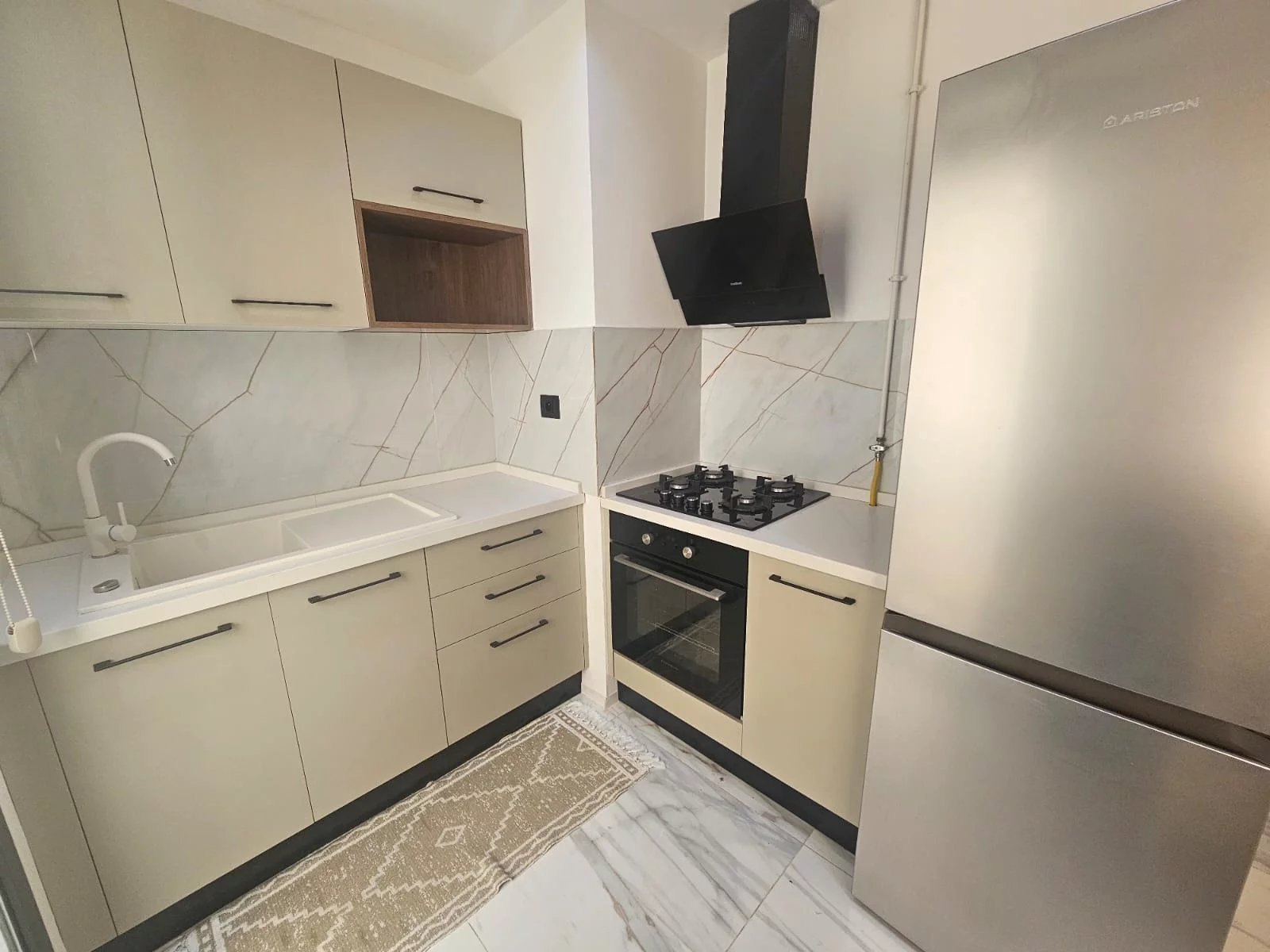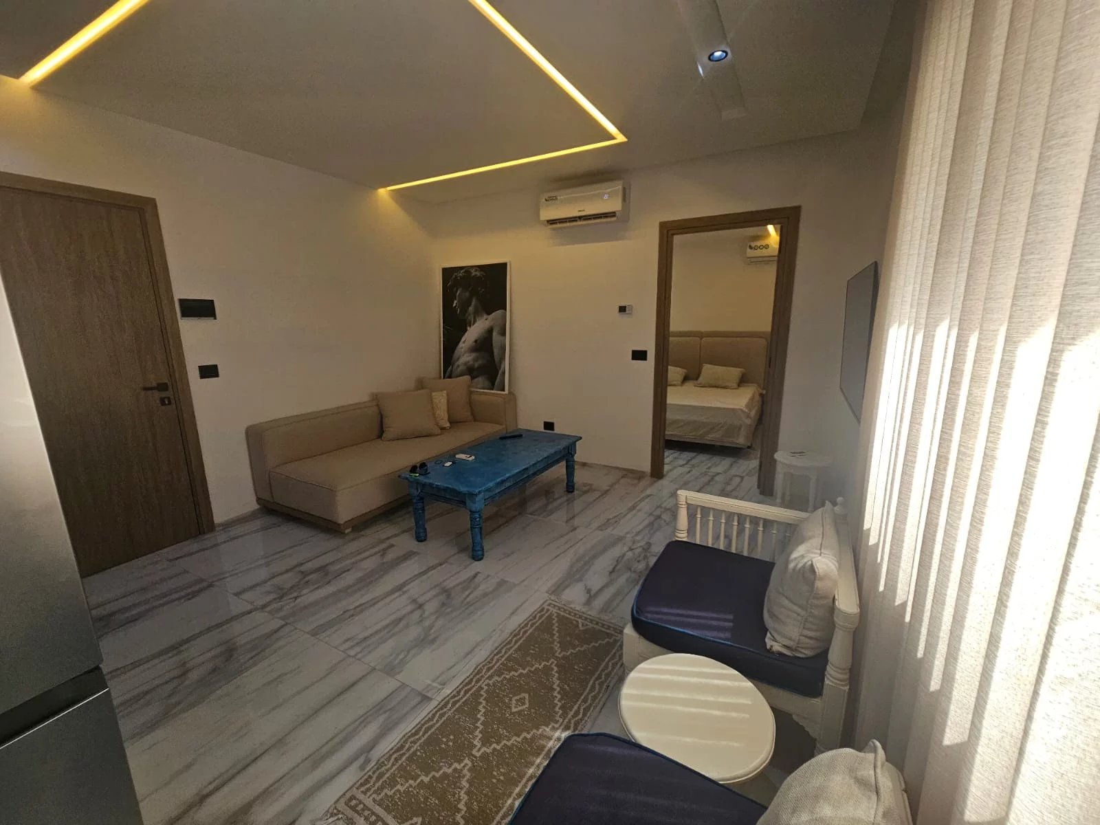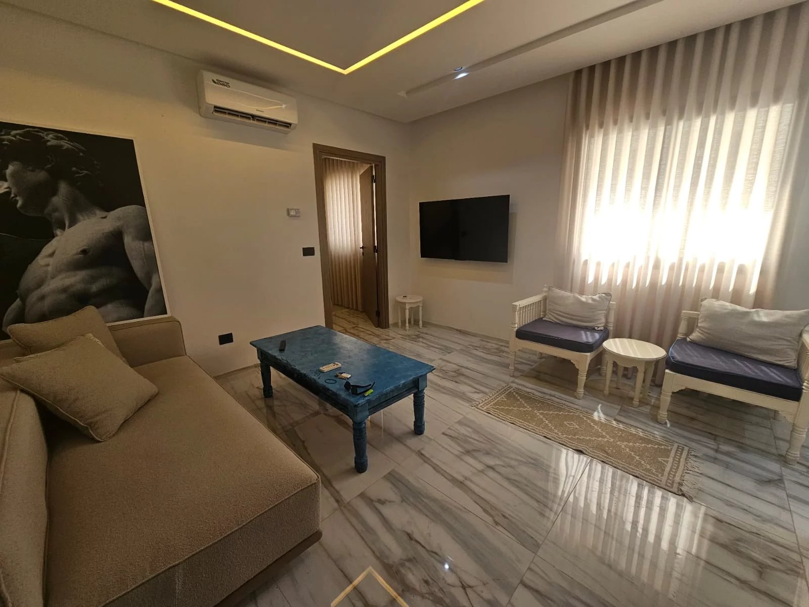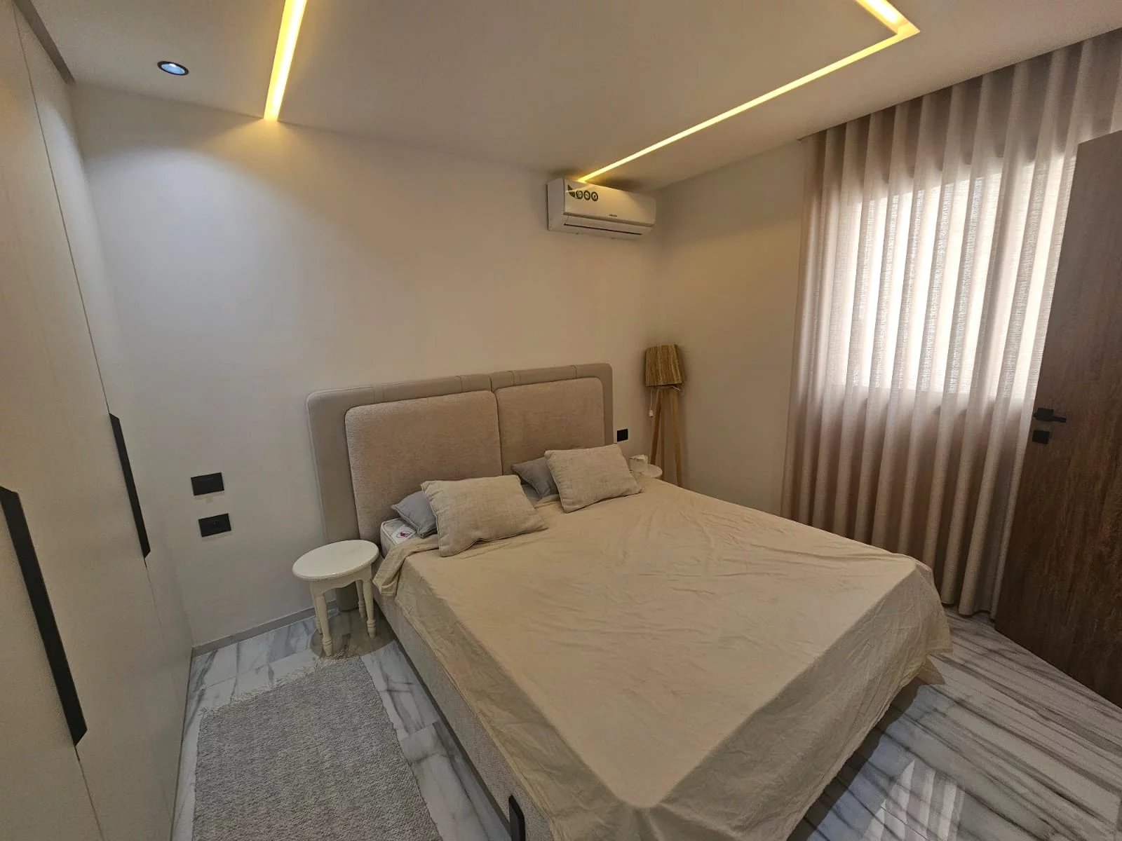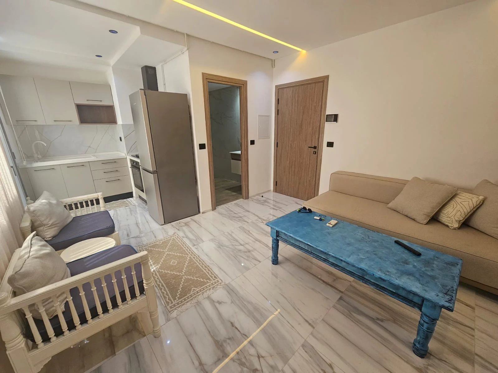 Appartement richement meublé : mobilier contemporain, équipements complets, prêt à vivre.